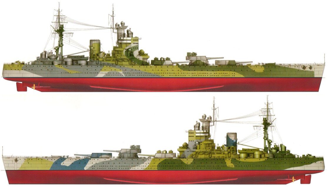 «Нельсон» окрасили согласно стандартной адмиралтейской схеме (Admiralty Standard Scheme).