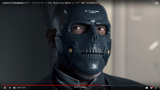 Человек в высокотехнологичном доспехе-скафандре ставит флаг студии со своим изображением на поверхности Луны. На лице у него маска-череп. А под маской – оцифрованное лицо Кодзимы. Хотя мэтр говорит что-то типа: «Это — любой из нас, это мы, надевшие маску черепа».