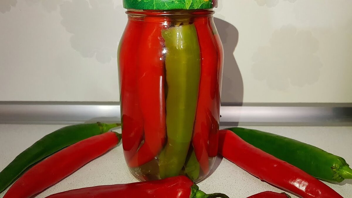 Очень интересная и вкусная закуска на зиму! Ингредиенты: 1. Острый перец. 2. Чеснок - 2 зубчика. 3. Уксусная эссенция 70% - 1 ч. ложка. Для маринада из расчета на 1 л. воды: 1. Соль - 1,5 ст. ложки с горкой. 2. Сахар - 3 ст. ложки с горкой. 3. Лавровый лист - 2 шт. Способ приготовления: 1. Острый перец хорошо промыть под проточной водой и обрезать плодоножки. Вдоль каждого перца сделать небольшой надрез. 2. На дно каждой банки отправить по 2 зубчика чеснока. Затем плотно заполнить банки перчиком. 3. Залить банки крутым кипятком, прикрыть крышкой и оставить на 15 минут. Через указанное время слить всю воду с банок в кастрюлю. В кастрюлю из расчета на 1 литр добавить лавровый лист, 3 ст. ложки сахара, 1,5 ст. ложек соли с горкой. Все хорошенько перемешать, дать маринаду закипеть и варить 3 минуты. 4. В каждую банку объёмом 1,5 литра влить 1 ч. ложку уксусной эссенции, а затем залить горячим маринадом. Плотно закрыть крышками и перевернуть банки крышками вниз. Окутать теплым одеял