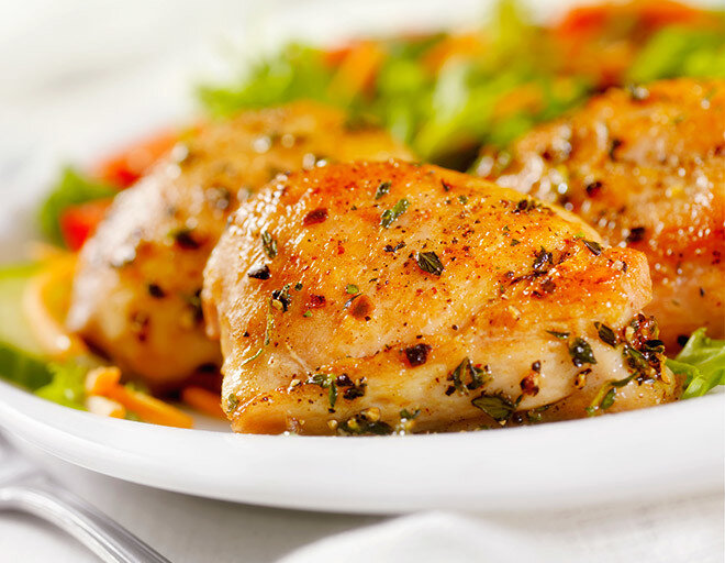 Иначе это блюдо называется каччиаторе или курица по-охотничьи. Оно представляет собой птицу, приготовленную в томатном соусе с добавлением грибов, овощей, маслин и пряностей. Это блюдо отличается насыщенным вкусом и питательными свойствами. Калорийность его несколько выше средней, поэтому не следует злоупотреблять им, но, только попробовав его, можно оценить итальянскую кухню по достоинству. Для приготовления курицы по-охотничьи в оригинальном варианте используют целую тушку цыпленка, которую режут на части. Но рассматриваемый рецепт является упрощенным, и блюдо готовят из куриных голеней. Приведённых в списке продуктов достаточно для приготовления 3 порций каччиаторе. Работу начинают с подготовки овощей. Лук очищают от шелухи и делят на полукольца. Из жгучего и болгарского перцев удаляют середину, промывают и режут соломкой. Также надо помыть корень сельдерея и измельчить его. Куриные голени промывают под проточной водой и укладывают на бумажное полотенце, чтобы обсушить. На сково