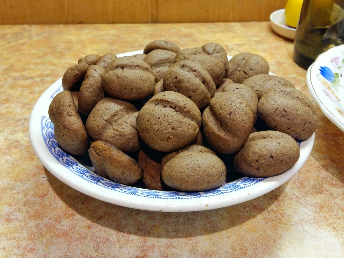 Ароматные печенюшки, приготовление которых не займет много времени! Для их приготовления нам понадобятся: *сливочное масло (размягченное) - 60г; *сметана - 100г; *сахарный песок - 100г; *какао-порошок - 25г; *растворимый кофе - 1ч.л. (растворить в 1 ст.л. горячего молока); *мука - 200г; *разрыхлитель - 1/2 ч.л. Приготовление: 1) Взбиваем масло с сахаром. 2) Добавляем к ним сметану, кофе в молоке, какао-порошок. Перемешиваем до однородной массы. 3) Небольшими порциями вводим муку. Ее может уйти меньше нормы или больше, указанной в составе - все зависит от густоты сметаны. У меня в итоге ушло чуть меньше муки, чем написано. Тесто само собралось в единый ком, не разваливалось и не прилипало к стенкам чашки. 4) При необходимости, предварительно застилаем противень пекарской бумагой, маслом не мажем. Смазываем руки растительным маслом (слишком много не нужно, совсем чуть-чуть). Из теста катаем небольшие шарики, размером с вишню или черешню (кому как нравится) и отправляем на противень. Рас