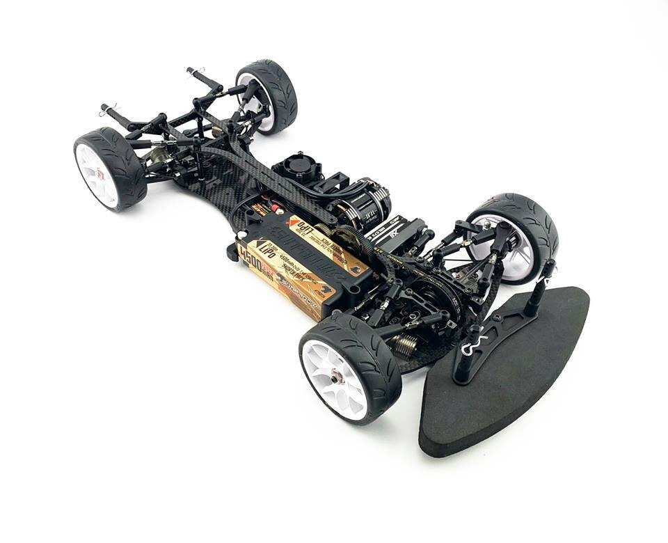 Нашей целью было создать переднеприводный автомобиль с легко меняющимся балансом веса между передней и задней осью, что является одной из основных настроек для автомобилей этого класса. Внутри переднего бампера мы установили вставку из стали весом 65 г, в которую можно добавить еще 50 г, поместив пять круглых грузов по 10гр в фрезерованные участки бампера. Кроме того, на нижней деке имеется множество дополнительных отверстий для крепления наших стандартных круглых грузов весом 10 и 5 г. Мы решили разместить компоненты (двигатель / сервопривод / батарею) как можно ближе к передней оси, чтобы усилить давление на ведущую ось. Это привело к необходимости разработки очень узкой и компактной системы рулевого управления. Благодаря всем этим решениям, распределение веса спереди / сзади на A800FX может быть