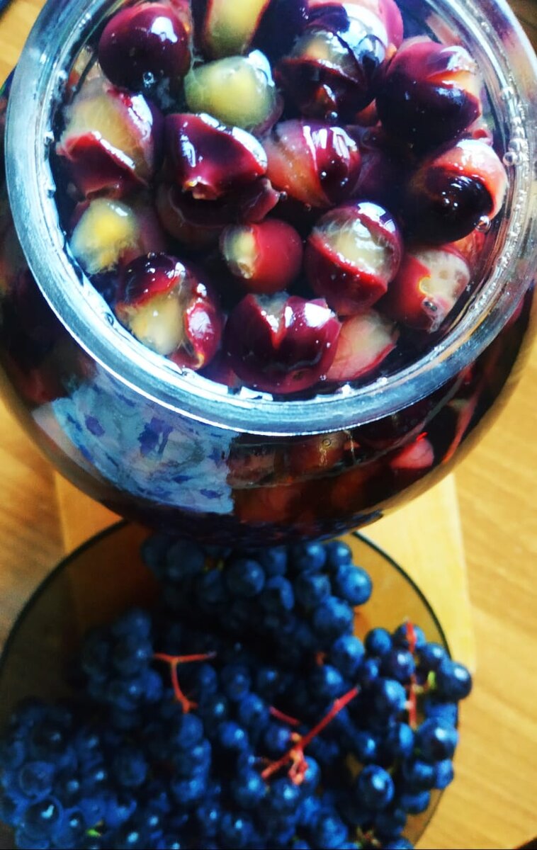 Этот компот делает моя тетя в Тамбовской области. У них теплее и лучше растет виноград. Я начинающий виноградарь и у меня пока небольшой урожай. Компот получается очень ароматный и вкусный. Я делаю на три литра воды 1.5 стакана сахарного песка. Вам понадобиться: Виноград Сахарный песок Вода Хорошее настроение! 1. Ставим на огонь готовить сироп. В воду добавляем сахар, помешиваем и доводим до кипения. 2. В стерилизованную посуду укладываем чистый виноград, который заливаем горячим сиропом. Виноград по объему занимает треть или четверть банки. После добавления сиропа он постепенно окрашивается в темный цвет. У меня сорт Изабелла и поэтому цвет получается ярким и насыщенным. 3. Накрываем крышкой банку и закручиваем на зиму. Ставим банки под теплое одеяло. Теперь остается ждать момента, когда можно открыть банку и полакомиться сладким компотиком. Приятного аппетита! Подписывайтесь на мой канал и ставьте лайки! Всем добра и процветания! Са