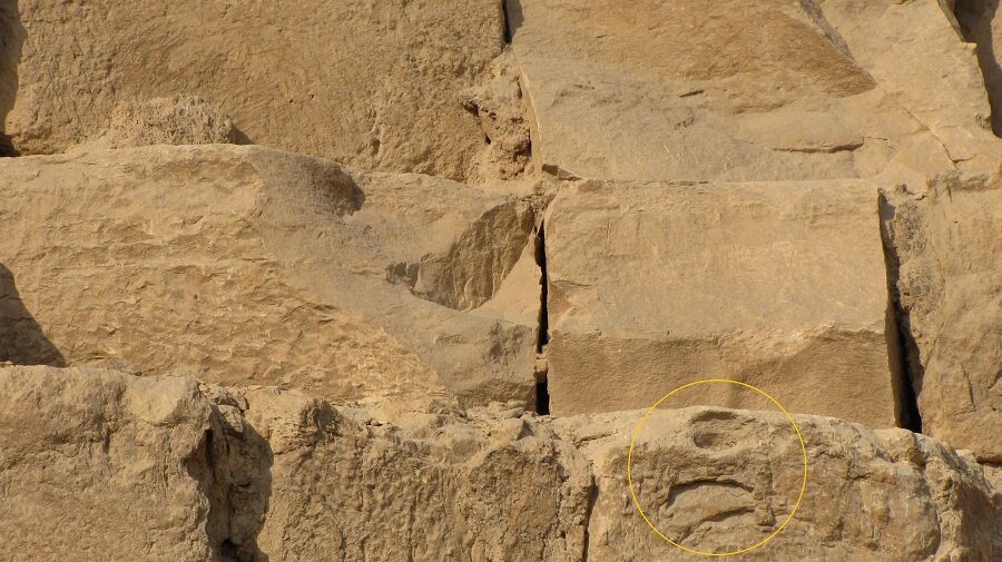 Пирамида Хеопса. Эти вмятины не могут быть эрозией, слишком они отличаются от всех видов эрозии на всех блоках. Таких там десятки.