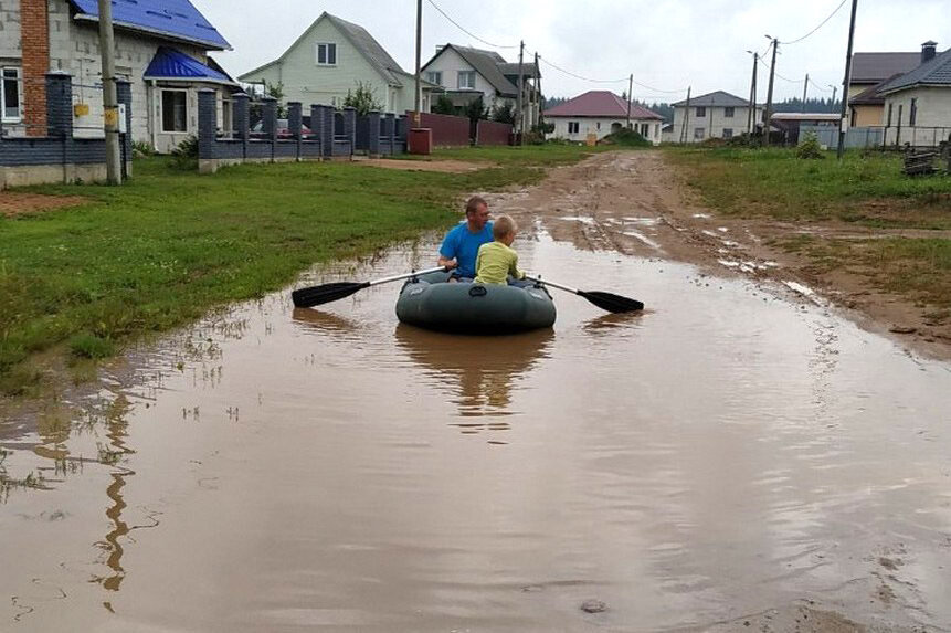 Кто ответит за пустые обещания? Жители поселка под Дзержинском плавают по дорогам на лодках