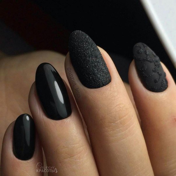 За окном полноценная осень. А значит, самое время сменить яркие оттенки неонового и оранжевого гель-лака, на, по истине характерный для этого времени года, - черный цвет. Чтобы маникюр не смотрелся грубо или старомодно важно запомнить основное правило: черные ногти должны быть короткими или средней длины. Никаких километровых ноготочков! И лучше без страз... 1. Все ногти черным Конечно, это самый простой вариант и модный, кстати. Ну а если хочется хоть как-то разнообразить маникюр, можно покрыть несколько ногтей матовыми топом или дополнить вензелями из черной посыпки. Другой вариант - черный глиттер на безымянном пальце или мизинчике. Глиттер и другие качественные покрытия для ногтей есть в этом магазине. 2. Черный френч Сейчас мало кто рисует классический френч, включая невест, так как этот вариант признан одним из антитрендов. А вот цветной французский маникюр актуален. Выполнить можно, как обычный френч, так и более сложный. К примеру, модно комбинировать френч с лунками, поло