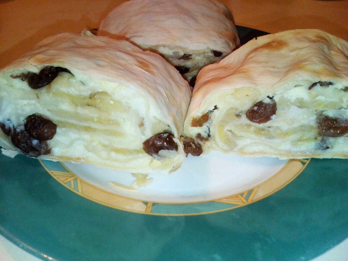 На 100 грамм - 141.91 ккал, Б/Ж/У - 12.67/2.44/17.21 Ингредиенты: Приготовление: Изюм залить тёплой водой на 10 минут. Творог тщательно перемешать с подсластителем, 1 яйцом и 1 белком. Банан нарезать на маленькие кусочки. Творожную массу выложить на лаваш и распределить равномерно (я использовала пшеничный ролл, на весь лаваш начинки не хватило, отрезала лишнее ~ 30 см). Сверху высыпать обсушенный изюм, банан и закрутить рулет. Смазать рулет желтком и по желанию посыпать сверху орешками. Выпекать в разогретой до 180 гр духовке ~25-30 мин. Дать немного остыть и нарезать. Приятного аппетита, ставь палец вверх и подписывайся на канал)))