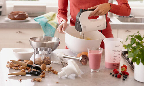Миксер - незаменимый прибор на кухне. В некоторых кулинарных целях, например, в том, что касается взбивания продуктов, ничего лучше миксера нет. Любое другое устройство подобного типа, вроде кухонного комбайна или блендера, с задачей, конечно же, справится, но не настолько быстро и качественно. Впрочем, с замешиванием теста, в том числе и пельменного, также ни один прибор не справится так хорошо, как миксер. Миксеры бывают ручные и станционарные. Ручные миксеры — те, которые нужно держать в руке — самые маломощные. Показатель их мощности составляет 150-500 Вт. Такие устройства хозяйки чаще всего используют при взбивании белков, сливок и других, не требующих высокой мощности работ. Набор насадок у таких приборов незамысловат: пара венчиков для взбивания и пара крюков для замешивания теста. Впрочем, крутое тесто такой миксер замесить не сможет — не хватит мощности. Но ему подвластно обладающее более мягкой консистенцией тесто для выпечки сдобы или блинное. Стационарные миксеры мощнее р