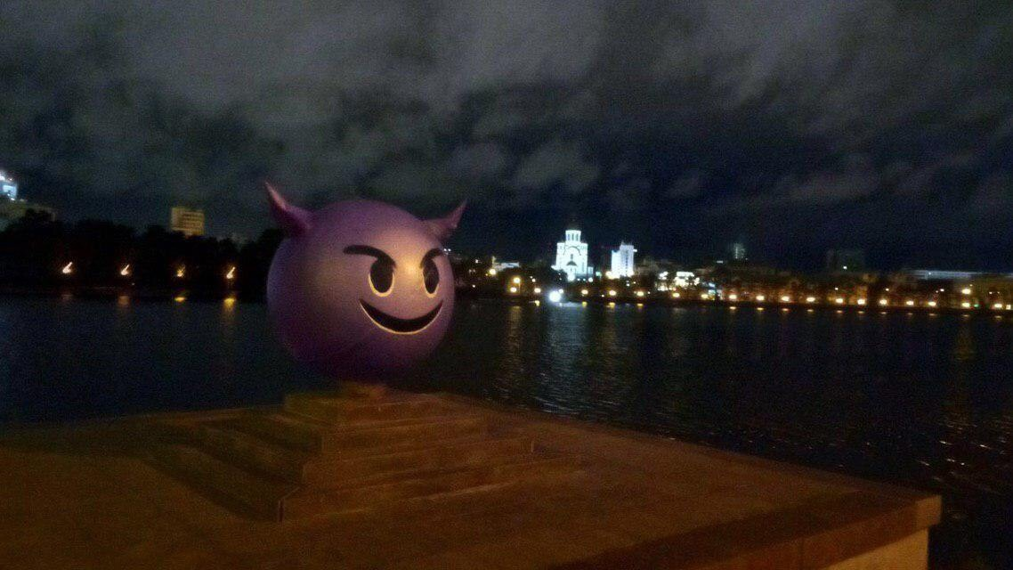 В Екб снова перекрасили шар на набережной, теперь, видимо, с отсылкой на фразу «Город бесов»