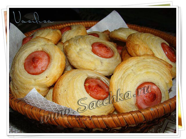 Сосиски в слоёном тесте «Пуговки» получились на завтрак - очень быстро, ну и, конечно, вкусно! Если сосиски ГОСТовские качественные, то кусочки такие сочные! Ингредиенты: Как приготовить: Полезный совет: можно приготовить из слоёного теста спиральки с беконом.