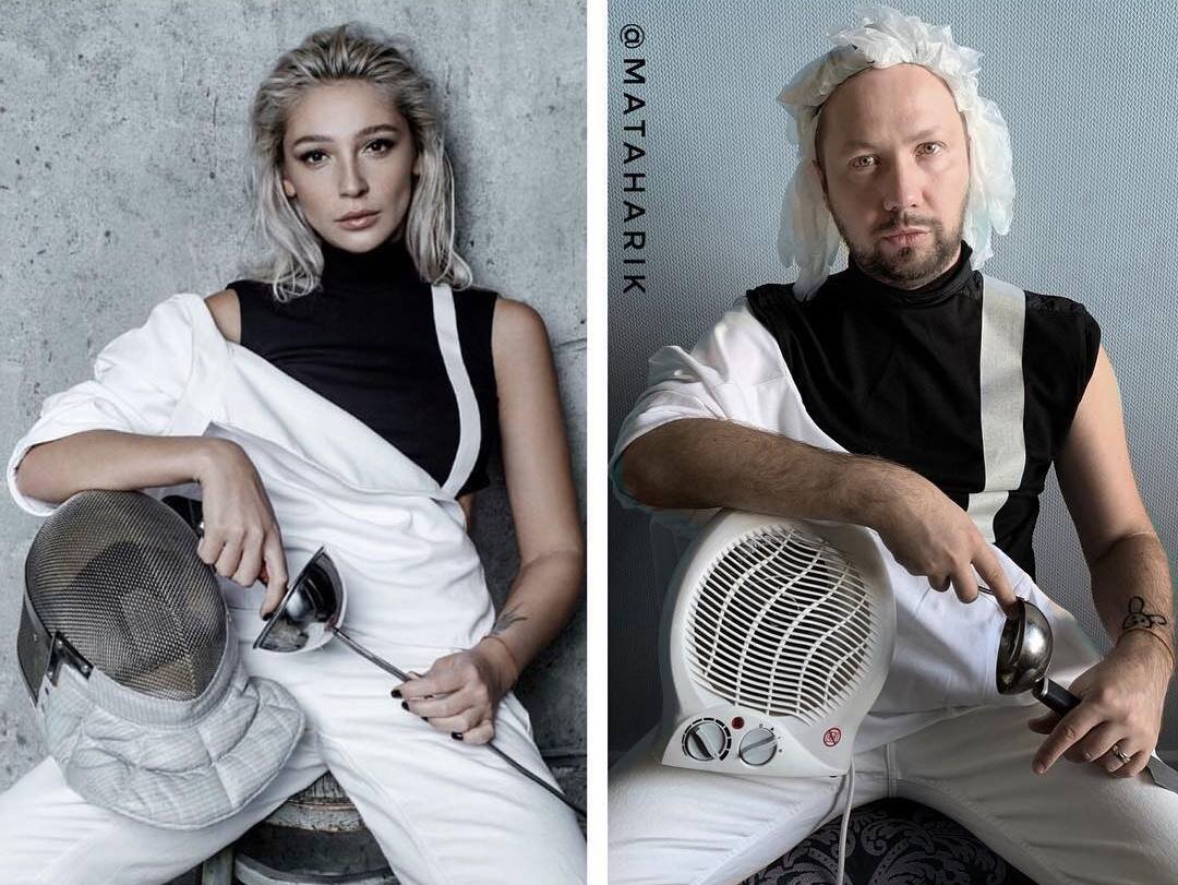 Парень повторяет образы знаменитостей, используя всё, что подвернётся под руку