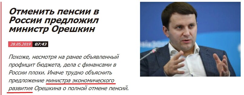 Начнем с того, что предложения о полной отмене пенсий исходят от вполне серьезных политиков. В частности, об этом активно начал говорить Министр экономического развития, Максим Орешкин.