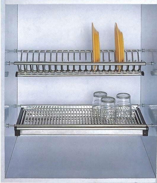 шкафа разбухает, даже если внизу ставить поддон и тщательно протирать столовые приборы. Отдельностоящая сушилка тоже подходит не всем. В малогабаритных кухнях она занимает место, которое лучше бы выделить под чайник или микроволновку. А вот пространство над раковиной практически не используется. А зря. Смотрите, как можно сэкономить место и заодно высушить посуду. Плюс этого варианта ещё и в том, что вода стекает в чашу мойки. Это полка, но она может выступать сушилкой для чашек или подставкой под моющие средства. Здесь уже не просто сушилка, это п