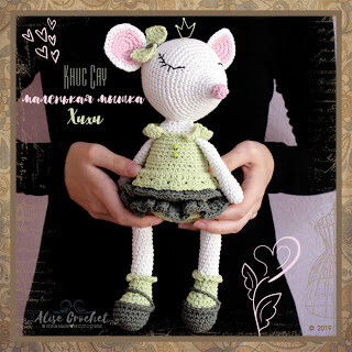 Маленькая мышка Xuxu Дата начала проекта: 31.08.2019 Дата окончания проекта: 01.09.2019 Техника: вязание крючком amigurumi Размер: высота 32 см Материалы: пряжа Камтекс КТ "Мягкий хлопок", крючок № 3,0, наполнитель, игла, мулине, 2 маленькие пуговицы Рекомендации по уходу: ручная стирка Мастер класс: перевод Елена Горлатых Источник описания модели: интернет, автор © Khuc Cay Новый год 2020 пройдет под знаком белой Мыши или Крыски. В дикой природе эти животные немного агрессивны, но одомашненные грызуны милые и ласковые питомцы. Желаю, чтобы в каждом доме поселилась нежная вязаная мышка (крыска). Питомец станет охранять дом и одарять хозяев уютом. Порадуйте себя и своих детей маленькой мышкой Xuxu. Она веселая и добрая, а главное, сделана своими руками!!! Пряжа Камтекс КТ "Мягкий хлопок" 002 - отбелка 026 - салат 042 - полынь 055 - светло-розовый пряжа: Камтекс КТ "Мягкий хлопок" страна: Россия состав: 70% хлопок, 30% нейлон вес: 100 г метраж: 220 м цвет: 002 - отбелка (тело), 026 - с