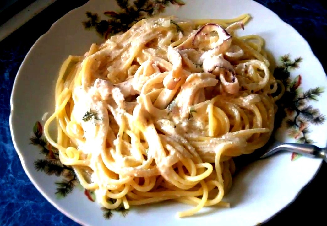 Ужин за 15 минут Я люблю рецепты на скорую руку,и этот не исключение🤗Быстро и вкусно🍽 Что нам нужно: ✅Первым делом мы очистим кальмаров Залейте кипятком и оставьте на минутку,кожица сама сойдет ✅Сливочное масло растопить на сковороде и обжариваем на нем чеснок ✅После чего добавляем кальмары,обжариваем 3 минутки,добавляем муку и все тщательно перемешиваем ✅Затем положите сметану и добавьте немного кипятка ✅Томим под крышкой минут 6 ✅За это время отвариваем спагетти ✅Подаем спагетти с подливой😋 Приятного аппетита Вам и Вашей семье🍽😋