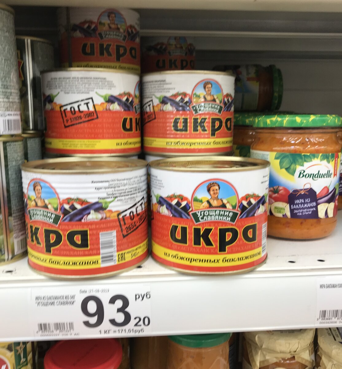 Всем привет, пришло время разбавить бесконечную тушёнку едой растительного происхождения. До правильного питания еще далеко, но хотя бы маленький шаг в его сторону. Сегодня на обзоре у нас "Угощение славянки", а именно Икра из обжаренных баклажанов. Куплено в Ашане за вполне весомые 93 рубля. В банке 545 граммов, итого из кило заморской баклажанной выйдет 171 руб. Надо отдать должное, банка качественная. Цвета приятные, пейзанка улыбается, всё как положено. К таре нареканий не имеется, посмотрим кто производитель. Изготовитель — ООО "Вкусный продукт", сидит в городе Москве, а производство развернул в Астрахани, на ул. Славянской 1/12. Больше никакой информации нет, даже завалящего телефонного номера, или электронной почты. Ладно, смотрим на состав: Баклажаны обжаренные, лук репчатый, масло подсолнечное рафинированное дезодорированное, морковь, томатная паста, соль поваренная пищевая, сахар, пряности. Никаких тебе консервантов, эмульгаторов и загустителей, даже непривычно. Итак, сост