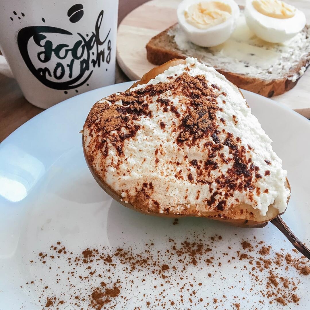 1/2 грушиТворог - 80 грМёд и корица по вкусу
