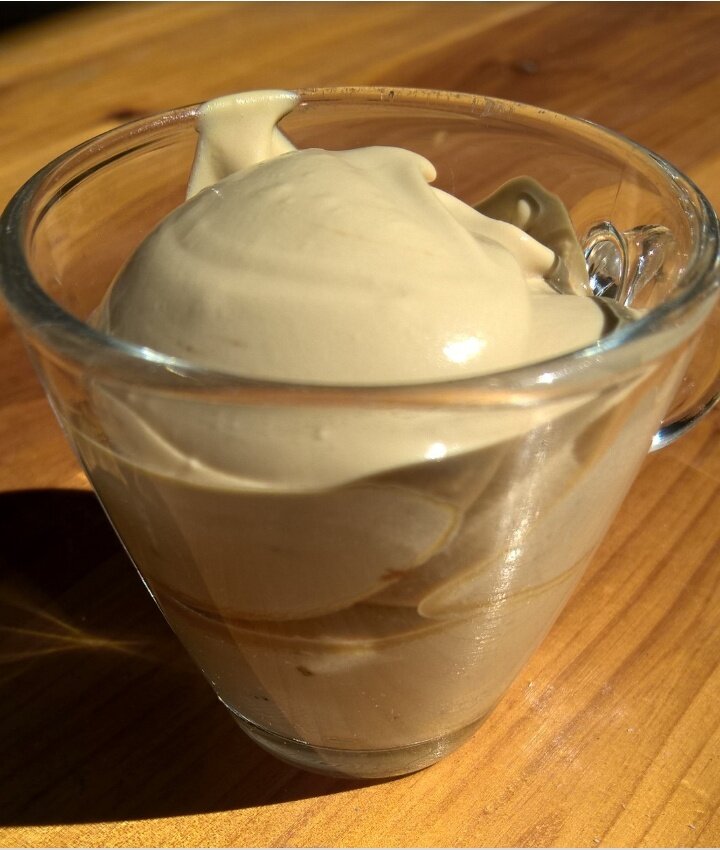 Нежнейший десерт, который можно делать по утрам за 5 минут. Ингредиенты 80мл воды 1ст. л. растворимого кофе 50 г сахара В тарелку выливаем воду и добавляем кофе. Миксером взбиваем секунд 20 до образование пены и постепенно добавляем сахар. И взбиваем 2-3 минуты постепенно увеличивая скорость.