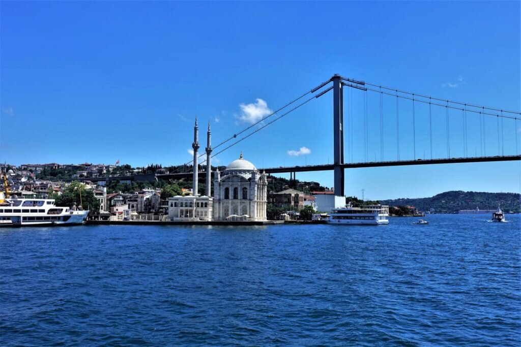 Автор: SMI TRAVEL Достопримечательности Стамбула При первом путешествии по Стамбулу – старинному восточному городу, особенно яркие и красочные впечатления оставит круиз по проливу Босфор. Это не только полезная морская прогулка в жаркую погоду, но и возможность осмотреть одновременно несколько достопримечательностей всего за несколько часов. Такая прогулка займет у вас всего 1 час и 45 минут на прогулочном катере. В ходе водного маршрута можно будет осмотреть европейскую прибрежную часть Стамбула, при движении в сторону Черного моря, а потом созерцать архитектуру азиатского берега с другой стороны. Этот город расположен одновременно на двух берегах и объединяет два континента – Азию и Европу. Незабываемые впечатления оставят подвесные мосты через пролив Босфор. Один из мостов в 1973 году построили британцы – он имеет протяженность 1074 метра и шесть полос движения. Второй в 1988 году был возведен японцами – на нем восемь полос движения, с двумя высокоскоростными железнодорожными ли