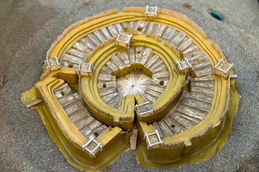 Одно из древнейших поселений, выявленных на территории России, Аркаим входит в число наиболее ярких археологических открытий второй половины XX столетия. Аркаим – современник египетских фараонов, самый известный памятник «Страны городов» на территории Южного Урала, свидетель древней истории индоевропейцев – прародителей многих современных народов. Планировочную структуру поселения составляли центральная площадь, два кольца оборонительных сооружений, два круга жилищ и одна кольцевая улица, совмещенная с ливневой канализацией. По предварительным подсчетам, на территории поселения могли свободно разместиться до двух с половиной тысяч человек. Чтобы представить масштабы города приведем некоторые цифры. Внутреннее кольцо фортификационных сооружений имело диаметр 85 метров и толщину 3-4 метра. Далее шла вторая оборонительная стена диаметром около 150 метров и ширину по основанию 4-5 метра. Сделана она была из бревенчатых клетей размером 3 на 4 метра, забитых грунтом с добавлением извести.