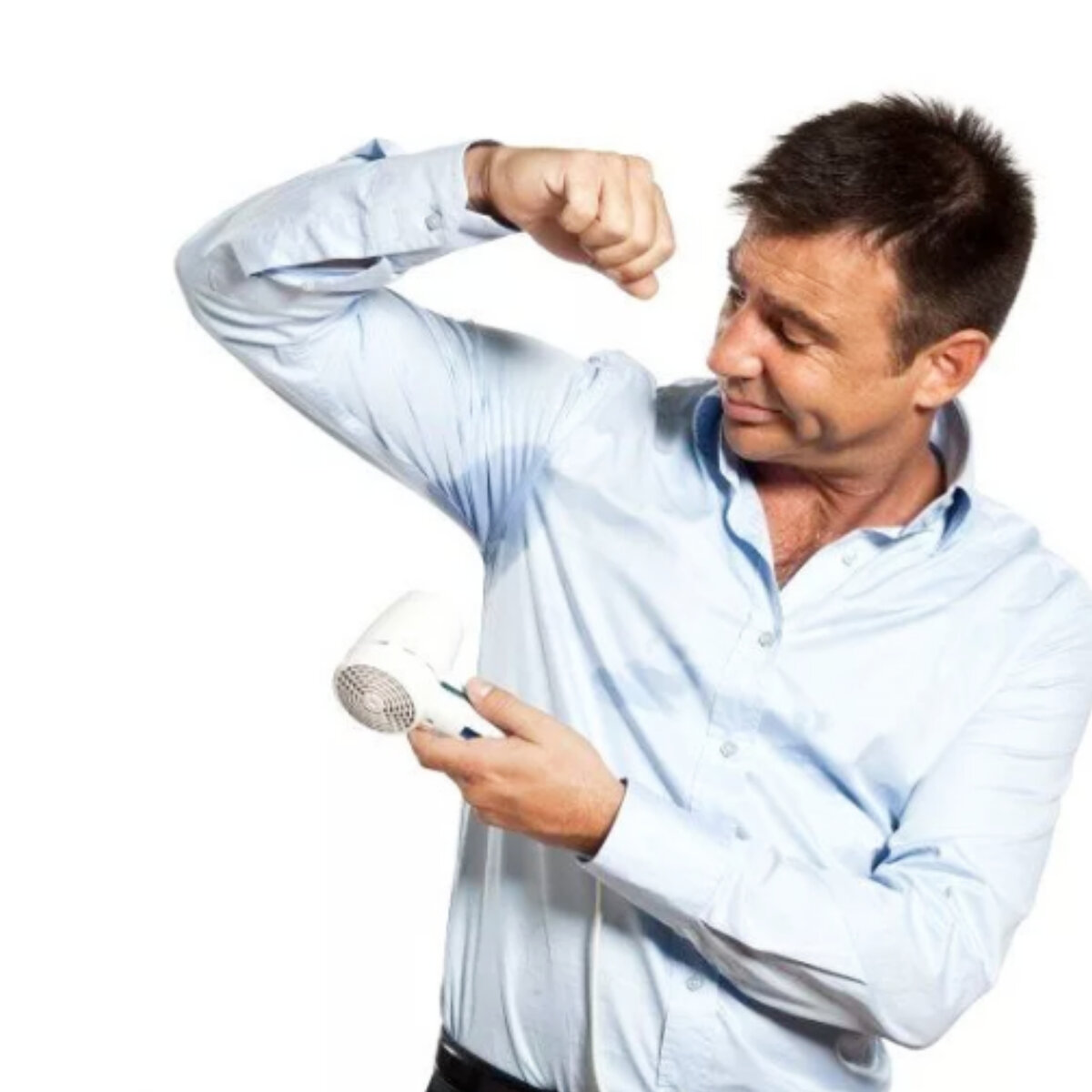 Господа, всем уже известная и бесившая ситуация, поднимая руку, вы видите это "чудо". Сегодня мы постараемся исправить подобное, или хотя бы что-то к этому предпринять. Итак, вперёд! 1. Носите темные цвета. Не носите цвета в жаркую погоду, такие как: серый, голубой, белый, но на нём более менее не так сильно, но все равно видно. Носите черные или тёмно-синие цвета, таким образом вам не надо будет больше краснеть за себя. 2. Используйте антиперспирант. Используйте антиперспирант вместо дезодоранта. Дайте ему шанс, если вы не сильно потеете. Вполне возможно, этого вам хватит, чтобы быть в порядке. 3. Используйте дополнительный слой одежды. Используя, дополнительный слой одежды поможет вам скрыть пот. Это может быть, к примеру ,майка, которая будет снизу рубашки. Также можно поверх одеть пиджак или же какую-нибудь рода кофту. Это поможет вам скрыть потовые части. 4. Используйте влажные салфетки. Вытерайте под подмышками, используя, салфетки, или можете купить специальные салфетки, которые