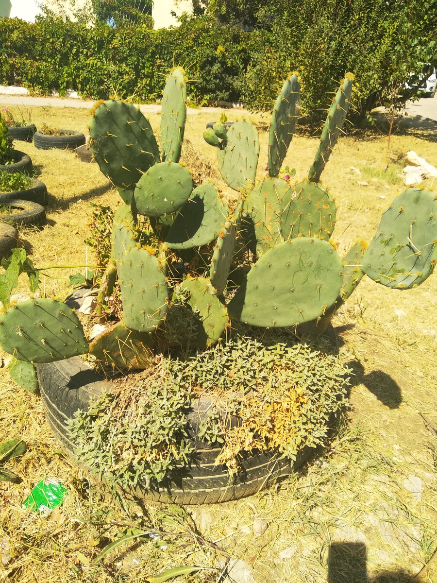 Опунция - один из видов кактуса. Многим нравится этот лопухастый смешной цветок. Опунция может расти как в открытой местности, так и в горшках дома. Проходя на улице , увидели вот такую красоту.