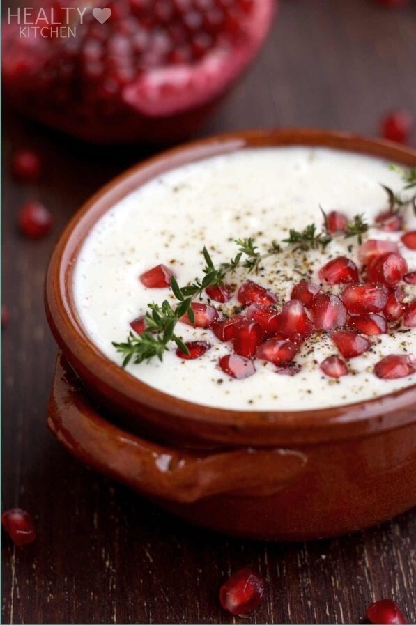 Европейская кухня Вкусный и легкий шелковистый веганский рецепт супа из цветной капусты за 30 минут! Насыщенный, сливочный, полезный и утешительный зимний суп, наполненный питательными веществами. курс Soup Кухня европейская Ключевое слово суп из цветной капусты, суп из цветной капусты, веганский суп из цветной капусты Время приготовления: 30 минут Порции: 2 порции Калории: 184 ккал Ингредиенты 1 небольшая цветная капуста или 1/2 крупная цветная капуста около 500 г 1 столовая ложка оливкового масла 2 зубчика чеснока измельчить 2 веточки тимьяна 350 мл или 1 1/2 стакана овощного бульона или воды 120 мл или 1/2 чашки легкого кокосового молока соль и свежемолотый черный перец по вкусу 4 столовые ложки семян граната, чтобы украсить 2 веточки тимьяна для украшения Инструкция Разделите головку цветной капусты на соцветия или грубо нарежьте ее. Вы можете использ