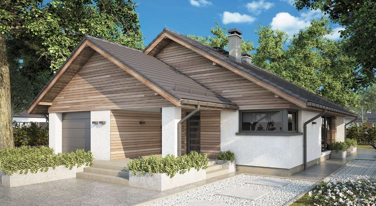 К вашему вниманию представлен современный проект дома с продуманной планировкой. Данный дом оптимален для проживания семьи из четырех человек. Спальная зона была четко отделена от жилой зоны. Большая прихожая с гардеробной, ванная комнатой, кухня с кладовой и просторная гостиная с камином - делают проживание в доме комфортным. Благодаря большому остеклению, окна гостиной выходят во внутренний двор, что защищает вас от посторонних взглядов, а также придает интерьеру достаточно дневного света и живописный вид. Большая крытая терраса будет идеальным местом для отдыха с семьей и друзьями даже в пасмурную погоду. Спальная зона состоит из трех спальных комнат, в том числе одна с гардеробом и большой ванной комнаты. В спальне под номером 6 есть выход на террасу. Со стороны улицы, дом дополняется гаражом на одну машину, покрытым двускатной крышей. 1 прихожая 5.70 2 холл 10.65 3 кухня 8.30 4 кладовая 0.65 5 гостиная со столовой 29.65 6 спальная с гардеробной 16.70 7 ванная комната 5.85 8 спаль