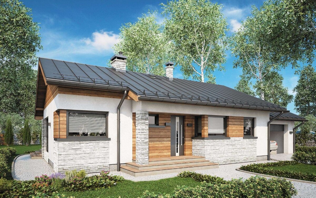 Современный проект дома с гаражом, общей площадью 109,2 м2