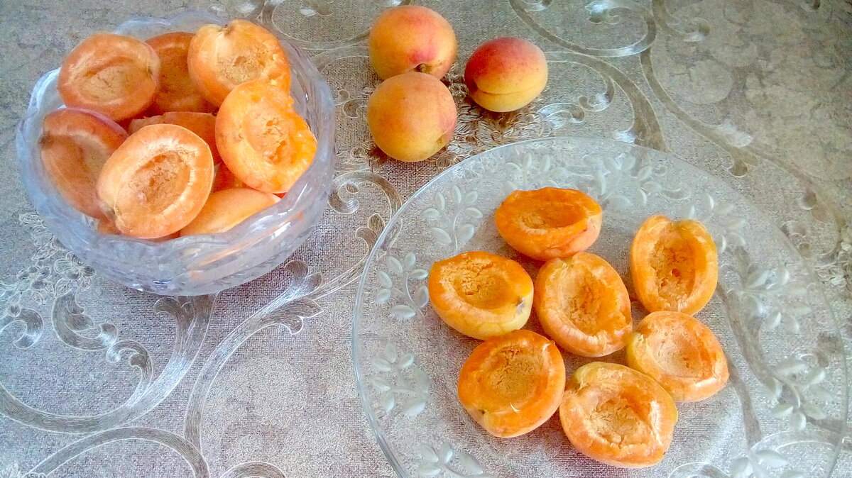 Я очень люблю выпечку с ягодами и фруктами. Но, увы, сезон свежих ягод недолог, поэтому единственный вариант, как заготовить их на зиму – это заморозить. И летом я замораживаю побольше малины, вишен, смородины и слив, а в этом году таким способом заготовила еще и абрикосы. И могу вас заверить, что замороженные абрикосы совершенно не теряют вкусовых качеств и остаются целыми и ароматными. Если Вы, как и я, не представляете своей жизни без фруктовых десертов, смело замораживайте абрикосы и наслаждайтесь всю зиму этими душистыми и сладкими фруктами. Все, что нам понадобится для замороженных абрикосов, это, собственно, сами плоды, поднос (или большое плоское блюдо) и пластиковый контейнер. Шаг №1. Абрикосы перебираем (слишком спелые и подгнившие фрукты откладываем) и обязательно промываем в холодной воде. Шаг №2. Раскладываем их на поднос и даем полностью подсохнуть. Шаг №3. Аккуратно разделяем плоды на две половинки и извлекаем косточку. Кстати, абрикосовые косточки я не выбрасываю, а под