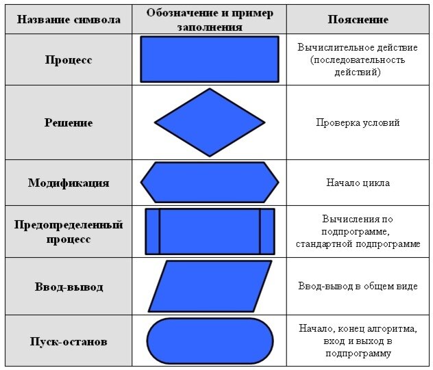 Существует несколько основных блоков. В интернете вы можете найти примерно такое описание для части из них. Цвет фона значения не имеет, и здесь он синий для большей наглядности (наверное)