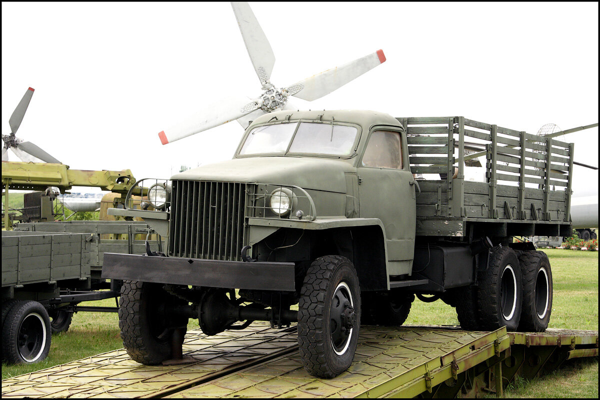 Студебекер Studebeker US 6 Американский армейский грузовой автомобиль повышенной проходимости. Поставлялся в СССР во время Великой Отечественной Войны по Ленд-лизу. Грузовик имел три ведущих моста и колесную формулу 6х6 , двигатель бензиновый, шестицилиндровый рядный мощностью 95 л/с объемом 5.5 л, КПП пятиступенчатая механическая, максимальная скорость по шоссе до 70 км/ч с( грузом 30 км/ч). На вооружении американской армии автомобиль практически не состоял, но активно экспортировался на фронт, производство началось в 1941 (в этот же год СССР вступил в войну с Германией). Причиной непопулярности грузовика армии США стал двигатель Hercules JXD который не проходил по принятым в те времена стандартам, вследствие чего Studebaker Corporation проиграла конкурс компаниям General Motors и International Harvester. Во время Войны грузовик использовался как артиллерийский тягач, платформа для установки реактивных минометов «Катюша», перевозки личного состава, а так же грузов и боеприпасов. Бл
