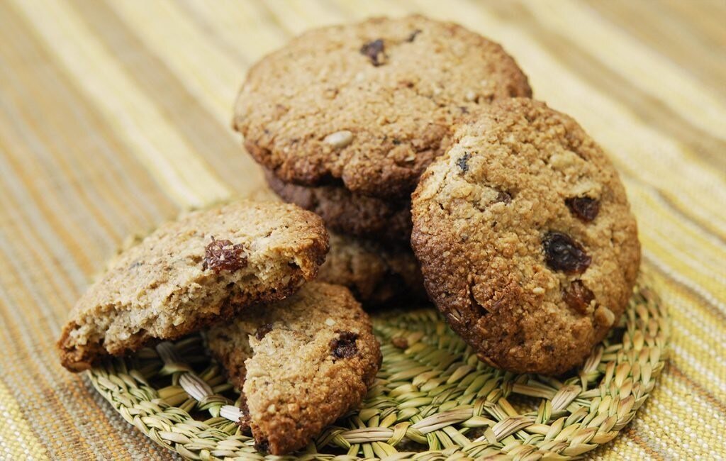 Очень вкусное, рассыпчатое и ароматное домашнее овсяное печенье. Ингредиенты: 150 гр. овсяных хлопьев 0,5 стакана изюма 100 гр. сливочного масла 50 гр. сахара яйцо 1 ч. л. ванильного сахара 100 гр. муки 0,5 ч. л. молотой корицы 0,5 ч. л. соды щепотка соли Приготовление: 1. Взбить мягкое сливочное масло с сахаром. 2. Вбить в массу холодное куриное яйцо. 3. Просеять муку. Смешать с содой, ванильным сахаром, молотой крицей и щепоткой соли. 4. Изюм перебрать и промыть теплой водой. Лучше всего брать для выпечки темный изюм, в котором мало или совсем нет косточек. 5. В яично-маслянную массу всыпать мучную смесь, овсяные хлопья. Замесить тесто. 6. Добавить в тесто подготовленный изюм. Рекомендую перед этим изюминки просушить на бумажной салфетке или присыпать мукой. 7. Противень застелить бумагой для выпечки и смазать маслом.