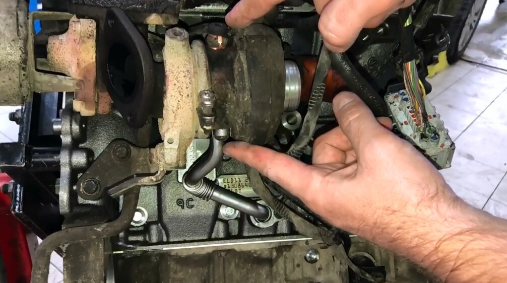 Правый турбокомпрессор (вспомогательный) - недостаточный слив масла. Повышенная дымность выхлопа после 15-20 минутной стоянки при работающем двигателе на холостом ходу. Данная неисправность устраняется путем установки модернизированной трубки слива масла, уровень слива которой значительно выше. На ранее отведенное место на поддоне для слива масла устанавливается специальная заглушка.