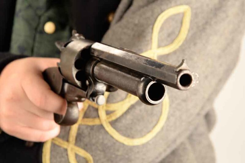Этот удивительный образец стрелкового оружия был разработан французом Жаном Александром Ле Ма (Jean Alexandre François LeMat) в 1856 году. Интересно, что Ле Ма не был ни инженером, ни даже оружейником- он был хирургом. Что было гораздо важнее, кузеном его жены был будущий генерал армии Конфедератов Pierre Gustave Toutant Beauregard Револьвер выпускался в трёх модификациях - капсюльный, шпилечный и под унитарный патрон(последний- экспериментально). Был самым желанным оружием для офицеров армии конфедератов во время Гражданской войны США. Самая большая новация - наличие двух стволов - нарезного калибра .42 (барабан на 9 зарядов) и однозарядного гладкого 18го калибра (16,5—16,83 мм) , который, одновременно, играл роль втулки барабана. Общая длина револьвера 356 мм, вес 3,1 фунтов -1,41 кг Этот револьвер был достаточно редким (поставлено в Конфедерацию примерно 1500 или чуть более единиц - 900 в армию и 600 во флот) и выполнял среди личного состава их армии такую же роль военног