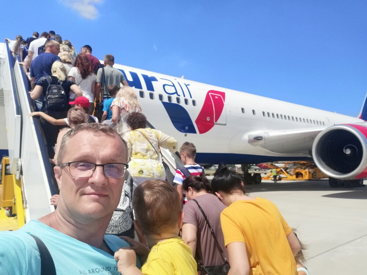 Этим рассказом начинаю мини-сериал о нашем первом отдыхе в Турции Как нам удалось запланировать в один отпуск Москву, Краснодар, Анапу и Турцию - рассказываю здесь 25 июня, после всех осложнений с путевкой, мы вылетели из Краснодара Удивил международный терминал в Краснодарском аэропорту. Небольшой совсем. Но давки не было - по крайней мере, мы комфортно прошли всю процедуру. И быстро. Все вылетающие были в настроении и даже ошибки в очереди, какие-то перемещения никого не напрягали. Люди спокойно, с шутками и улыбками находили общий язык На снижении самолёт начало потряхивать и болталось крыло. Заснять не успел Два часа - и мы в Анталии! Вот это удобная география! А у нас, из Братска, за 2 часа даже из Сибири ещё не вылетишь)) И первое, что мы оценили - на получении багажа, один из наших чемоданов приехал без ручки Оторвали её кубанские богатыри или уже турки - осталось загадкой. Ну и ладно - не будем встречать по одёжке. Все ещё впереди! Дальше нам предстояло найти представ