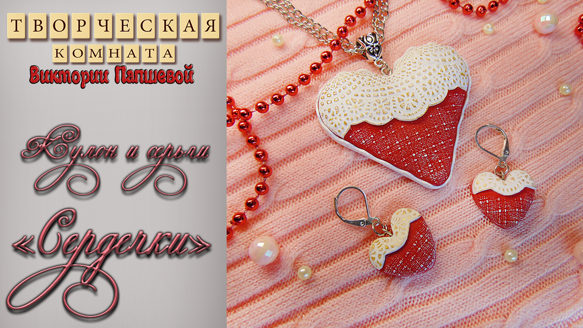 В этом мастер-классе я покажу, как из полимерной глины сделать комплект украшений: кулон и серьги в виде сердечек.