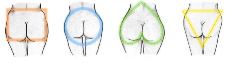 От того, как именно распределяется подкожный жир относительного вашего тела, зависят разные составляющие здоровья организма. К примеру, повышенная опасность проявления сахарного диабета или получить болезнь сердца через много лет. Форму ягодиц представительниц прекрасной половины человечества можно разделить на четыре представленных ниже типа. 1. Тип "площадь" или форма ягодиц буквой "Н". Для данного типа характерно расположение подкожного жира в безупречной геометрической форме. Данное телосложение представляет женщин с прекрасным здоровьем и завидной выносливостью организма. Для получения более округлой формы этой части тела, необходимо периодически выполнять тренировку для ног из положения лёжа на боку. Даже несложные подъемы ног способствуют достижению цели. Не помешали бы и наклоны и растяжка. 2. Тип "перевернутый треугольник" или v - образная форма ягодиц характерна для представительниц с низким уровнем эстрогена. У дам старшего поколения дефицит данного гормона способствует