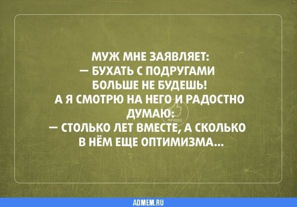 1 — Волнуетесь? — Да. — Первый раз? — Нет, я уже волновался и раньше… 2 Вечером жена говорит мужу: — Милый, тебе рассказать как я покаталась на нашей новой машине или ты узнаешь завтра из газет? 3 Женщина покупает на базаре десять петухов и одну курицу. Продавец ей говорит: — Надо наоборот: десять кур и одного петуха. Она: — Пусть хоть ей повезёт 4 — Папа, это Полина. Мы любим друг друга, скоро поженимся, у нас будет много детей и счастливый брак. — Дети, я рад вашему семейному счастью! Отводит в сторону: — Сынок… Чтоб с утра этой девки не было! — Само собой… пап! 5 – Мама, пожалуйста, принеси воды! – Встань и возьми! – Мама, принеси воды! – Будешь ныть – возьму ремень! – Пойдешь за ремнем – водички прихвати!