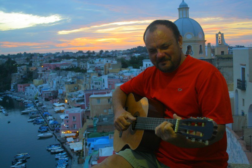 Наконец вышли к причалу. Посидели в кафе с мороженым, на струны просится тихая музыка. Итальянцы гитаре явно рады.