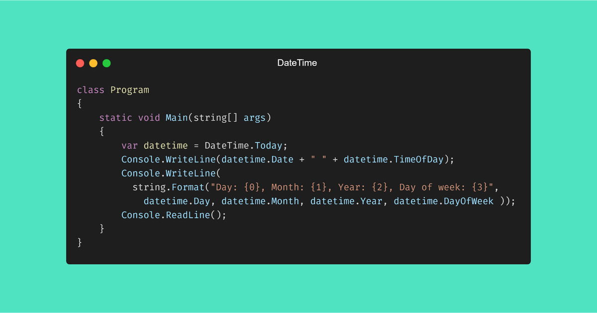 У структуры DateTime реализовано большое количество удобных полей/свойств для работы с датой и временем, что позволяет работать с конкретными уже отформатированными данными. Подробнее о полях и свойствах DateTime этой статье.