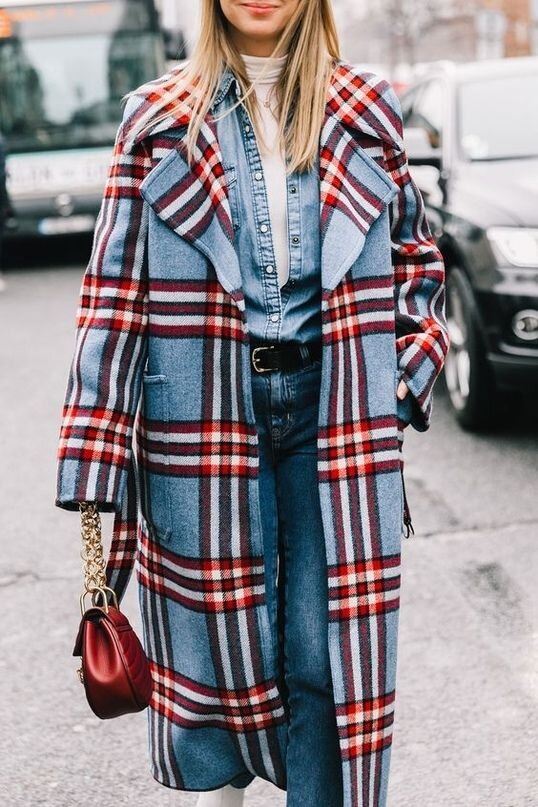 Пятерка топовых вариантов клеточного принта на пальто, которые будут популярны этой осенью как никогда и останутся частью базового гардероба надолго Синее пальто в контрастную клетку На первый взгляд ядовито-контрастное сочетание синего (все его оттенки) и красного на деле оказалось не только гармоничным, но и стильным. Стилисты нашли с чем можно надевать пальто с таким рисунком и сине-красная клетка обрела новый смысл в моде. С сине-красной клеткой прекрасно смотрится любой деним, поэтому использовать такое пальто легко в кэжуальных расслабленных образах. Благородный серый Классическое сочетание цветов-ахроматов: черного, белого и серого в одном клеточном рисунке создает поистине благородный, дорого, элегантный образ. Какой бы фасон пальто вы не выбрали, эта триад цветов будет работать на статус и репутацию. Выбирая чуть приталенные силуэты можно получить элегантный утонченный аутфит, а более прямой крой на мужской манер создаст интеллигентный дорогой образ. Масштаб рисунка и о