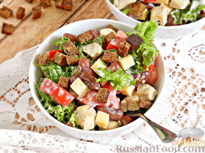 Новый салат - отличный повод позвать гостей! Приготовление лёгкого и полезного салата из огурцов с зеленью и консервированным горошком займёт минимум времени. Такое свежее и сочное блюдо удачно впишется в любое меню. Салат из помидоров с творогом и зелёным луком - блюдо с интересным сочетанием продуктов. Нежный творог и свежий зелёный лучок прекрасно гармонируют между собой. Салатик подойдёт в качестве перекуса или выручит в случае прихода неожиданных гостей. Пикантный и очень необычный острый салат с жареными овощами и грибами, по-корейски. Его можно использовать как самостоятельное блюдо, а также он отлично "оживит" различные гарниры, например, рис. Замечательное блюдо для тех, кто любит посытнее. Салат с макаронами, крабовыми палочками и маслинами - это тандем любимых многими продуктов, который обещает новые гастрономические впечатления. Заправка с добавлением соевого соуса и горчицы деликатно подчёркивает вкус каждого компонента. Салат из капусты с кукурузой и арахисом - интересн
