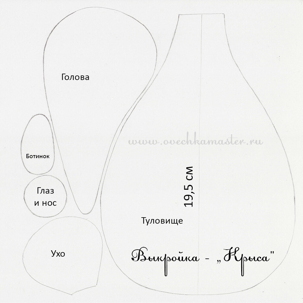 Всем добрый день. Сегодня завершающая статья про декоративную подушку и аппликации. Как и обещала, выкладываю выкройку крысиной парочки. Я указала размер туловища. Такой размер подойдет для больших декоративных подушек 50 Х 70 см. Для аппликации потребуются (для одной крысы): Туловище - 1 деталь Голова - 1 деталь Ухо - 2 детали Глаз - 2 детали ( + если ткань тонкая еще 2 детали) Нос - 1 деталь Ботинки - 2 детали. Напоминаю, что если ткань сыпучая, то нужно сделать еще припуски (примерно 1 см) на подгибку. Почему такая форма "шеи"? Я сделала специально такой универсальный широкий верх у туловища, чтобы можно было голову "приделать" разными способами, с разным наклоном. В том числе сделать крысок с поднятой вверх головой. У меня получилась вот такая аппликация. Подробное описание здесь: "Машинные строчки. Часть 4. Аппликации". И как сшить непосредственно сам чехол - "Чехол для декоративной подушки за 15 минут" . Я решила сделать еще несколько эскизов. Возможно кому-нибудь пригодят