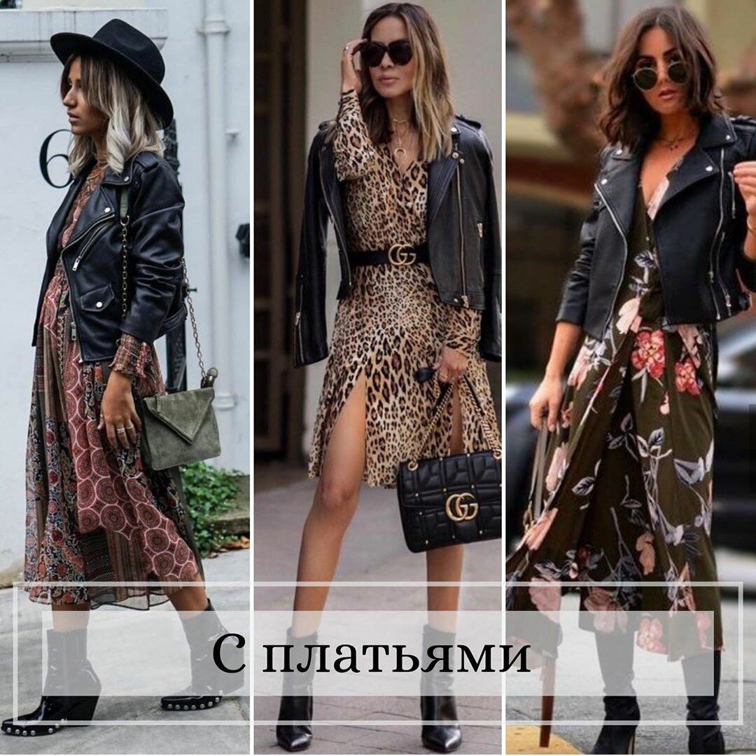 Кожаная куртка-косуха - это современная база женского гардероба, которая актуальна абсолютно в каждое межсезонье. Лето подходит к концу, и пора задуматься, как мы будем одеваться, когда придут первые прохладные деньки. Косуха не обязательно должна быть из натуральной кожи (можно найти качественный заменитель) и не обязательно черная - не менее универсальная синяя, коричневая, даже розовая. Отталкивайтесь от своего лично стиля. Итак, с чем носить косуху, чтобы выглядеть стильно, и чтобы не с одними только джинсами? Вариантов масса! Сочетание грубой, дерзкой, рокерской куртки-косухи и женственного летящего платья всегда смотрится безумно актуально. Дело именно вот в этом контрасте грубого и нежного. Платья выбираем просторные, из легких материалов, желательно в длине миди - так образ получится более современным. Если вам некогда следить за модными трендами, то подписывайтесь на мой канал, я расскажу всё, что важно знать о современной моде, чтобы выработать свой стиль! Примерно того же э