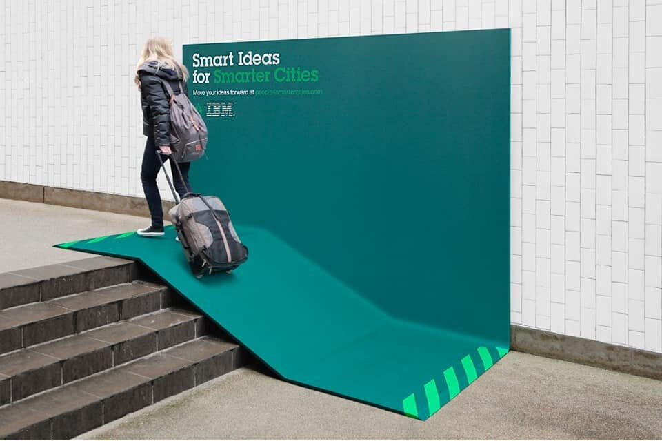 ДА! Баннер IBM позволяет удобно катить чемодан по лестнице.