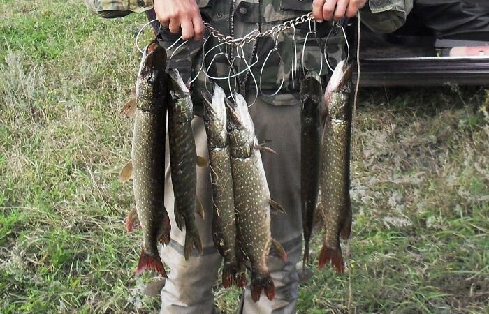 Раздел: Снасти для ловли рыбы Любой мальчишка знает, что надо делать с пойманными на речке плотвичками и пескарями. Садок ему ни к чему. Он берет кусок относительно толстой лески и привязывает к нему с обоих концов палочки. Одну палочку пропускает под жаберную крышку рыбы через рот, и она повисает на второй. Первая втыкается в берег, и рыбка плавает в воде на привязи, иначе она вскоре высохнет и испортится. Не любой мальчишка знает, что он соорудил простейший кукан для хранения в воде и переноски рыбы. Вот последнее делать ему нравится, особенно когда улов представляет длинную нитку и с ним можно пройти у всех на виду. Рыболов-любитель, особенно если оказывается на водоеме мимоходом, не обременяет себя излишними принадлежностями к удочке или спиннингу. И при этом не волнуется, что некуда будет деть добычу. Нет никакого шнурка, он отрежет ивовую ветку с сучком на конце и на нее станет нанизывать рыбу, тоже опуская ее в воду на мелком месте, желательно в траве, чтобы не уплыла потихоньк