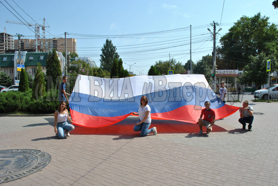 В четверг 22 августа на небольшой площадке на аллее Кирова оказалось многолюдно. Прохожие с интересом смотрели на молодежь, развернувшую огромное полотнище – флаг России. Некоторые даже перешептывались: