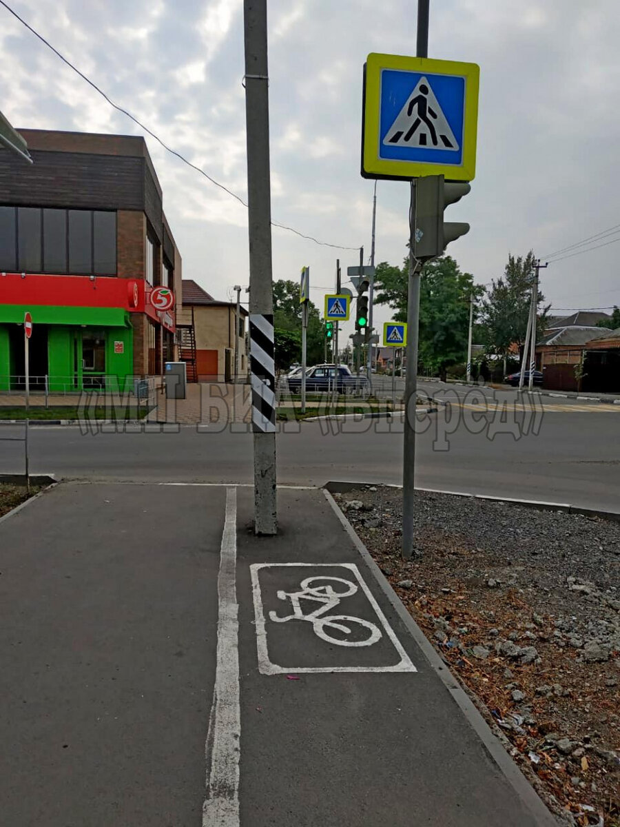 Из Койсуга наша читательница прислала вот такую замечательную фотографию велодорожки на перекрестке улиц Ставропольской и Горького.