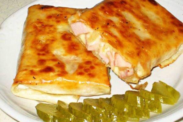Готовится блюдо достаточно просто, нет необходимости готовить тесто. Замешали начинку, завернули и приготовили на сковороде. Все очень просто и недолго. Получаются же конвертики очень вкусными. Советую приготовить, вам и вашим близким точно понравится! Продукты - 50 грамм ветчины; - 20 грамм сыра твердого сорта; - один тонкий армянский лаваш; - одна столовая ложка растительного масла; - одна луковица; - майонез берите на свой вкус. Процесс приготовления 1. Очистите луковицу от шелухи, промойте и нарежьте на кубики. Также порубите ножом и ветчину. 2. Разогрейте сковороду с растительным маслом, обжарьте подготовленный лук и ветчину. 3. Лаваш разрежьте на четыре квадратика, смажьте майонезом. 4. Добавьте мясную начинку с луком, посыпьте тертым сыром. 5. Сверните в конвертик и отправьте в разогретую сковородку с маслом. 6. Готовьте блюдо до появления золотистости со всех сторон. 7. Все готово! Можно подавать к столу со свежими, маринованными овощами, соусами. Все на ваш вкус. Приятного